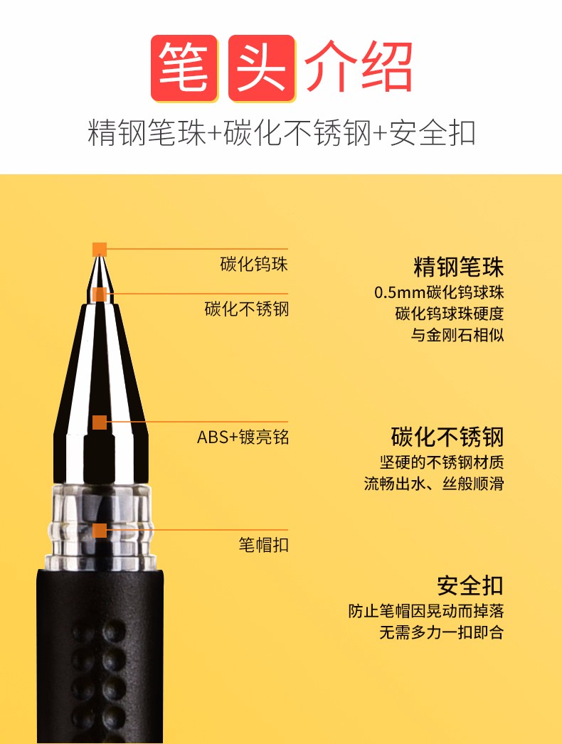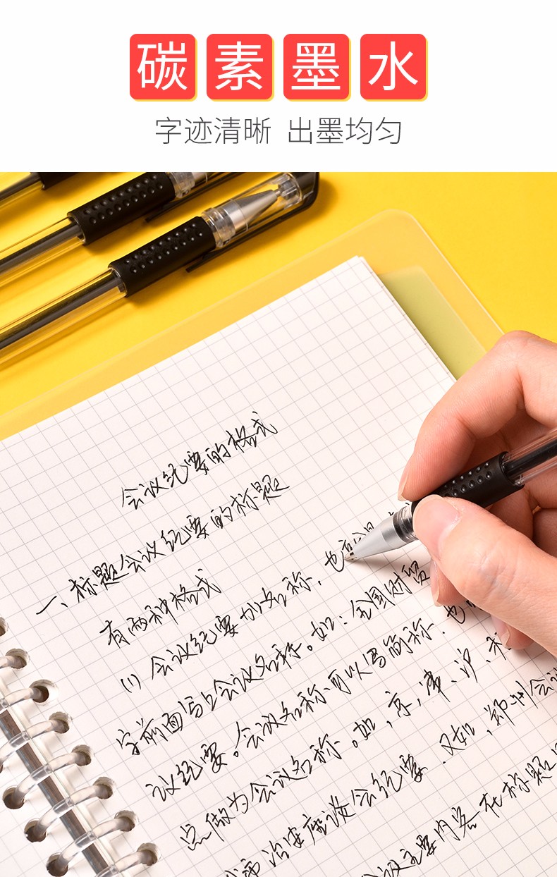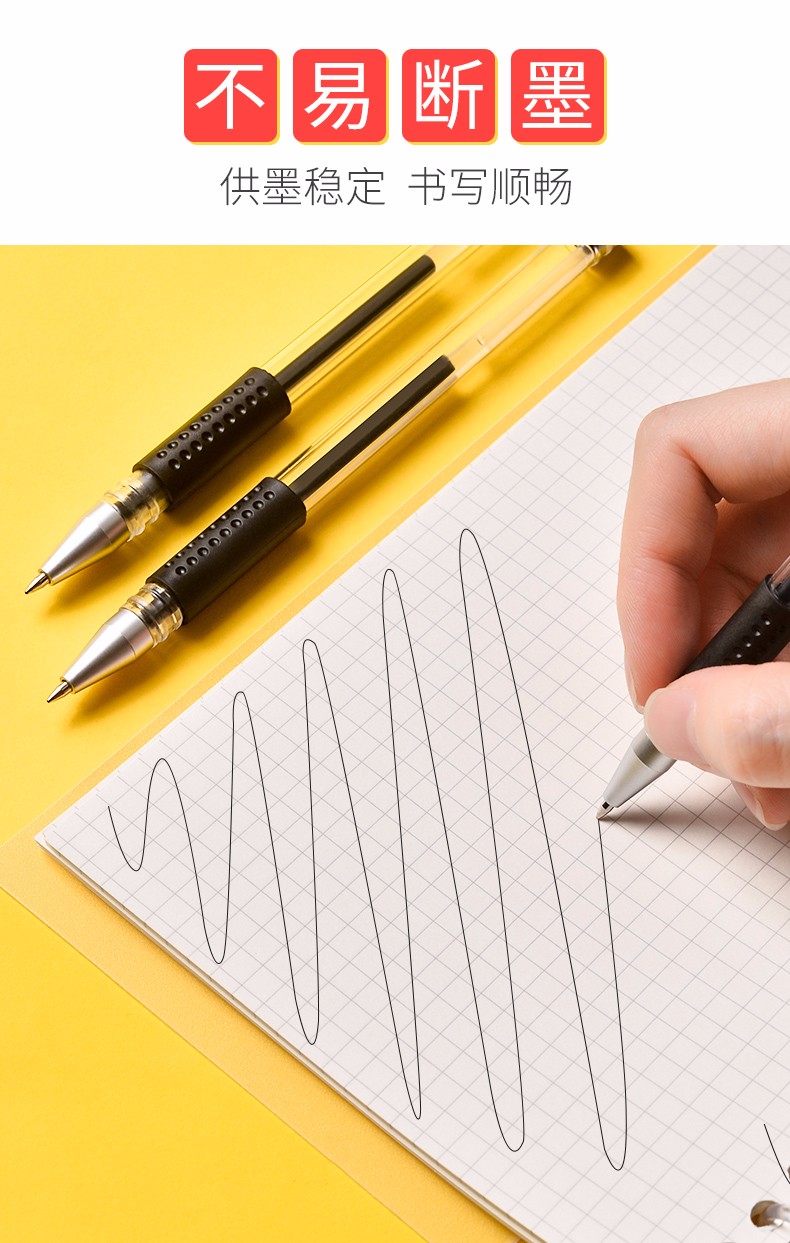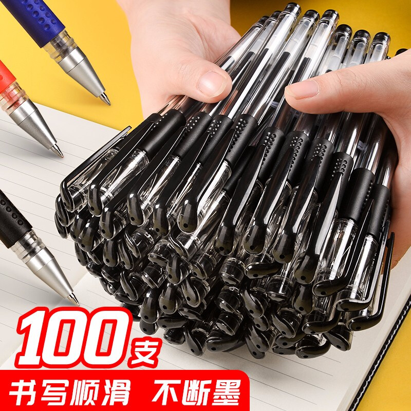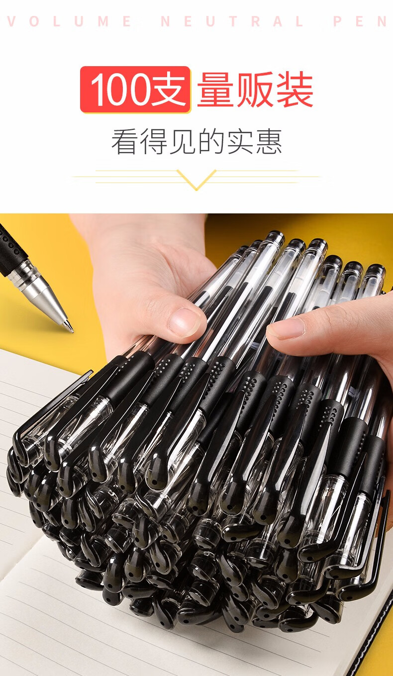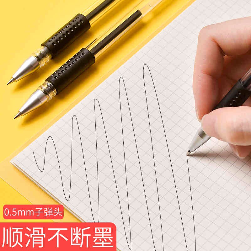 200支中性笔黑色0.5mm学生用签字笔芯碳素的笔商务圆珠水笔签约笔书写考试教师专用刷题笔学生文具 【巨能写】60支/黑色/0.5mm 自营