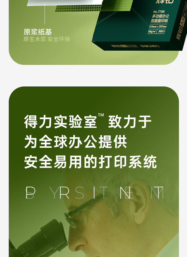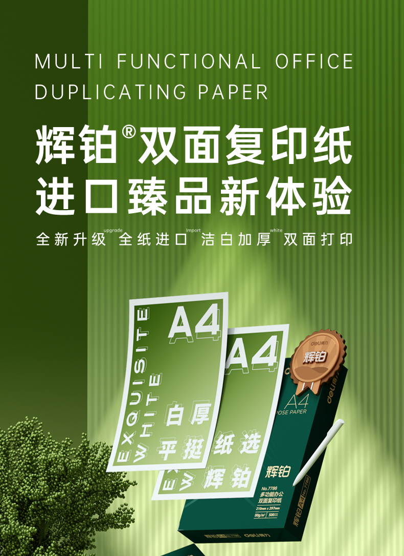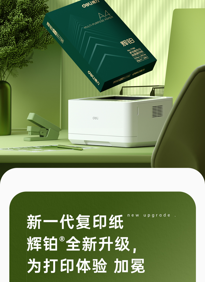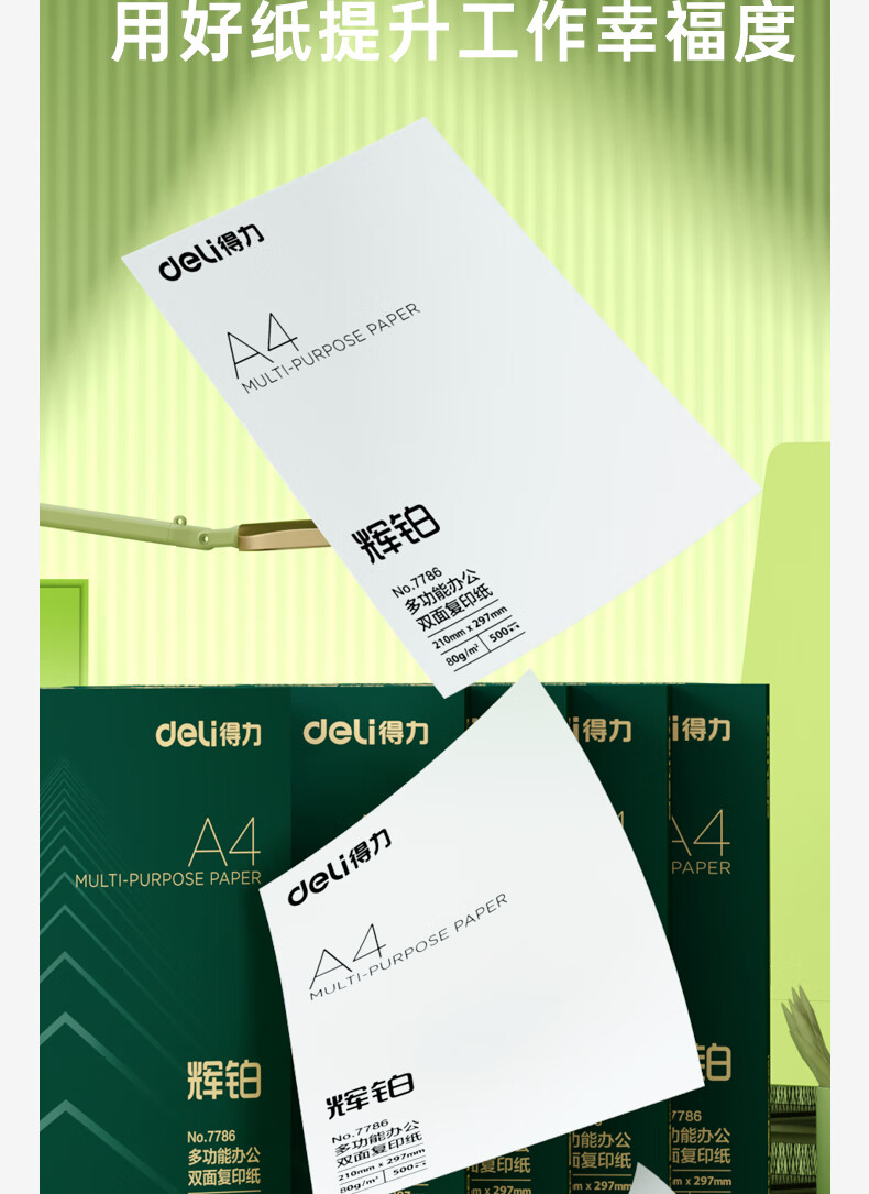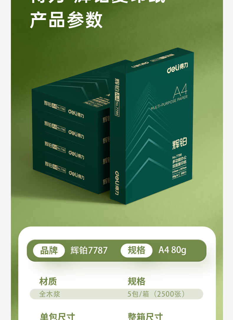 得力(deli)辉铂 A4 80g 加厚双面打印纸 原装进口复印纸 500张/包 5包1箱(整箱2500张) 自营