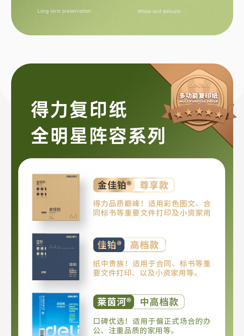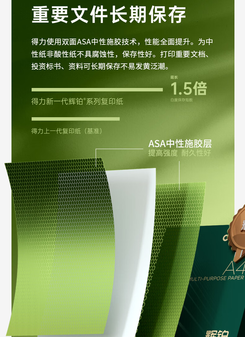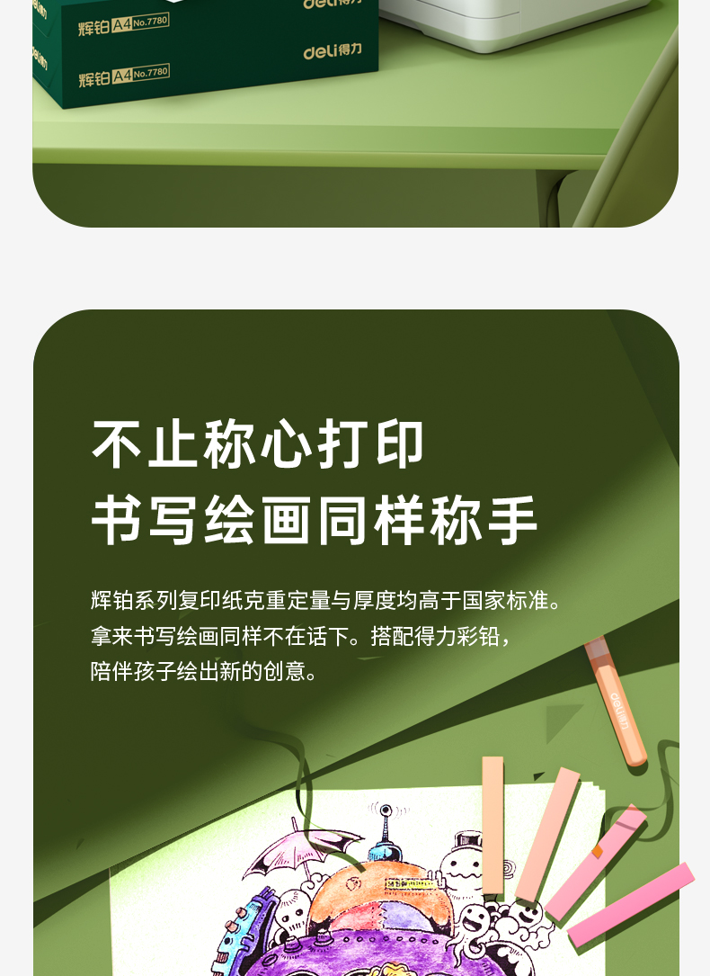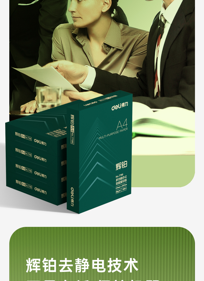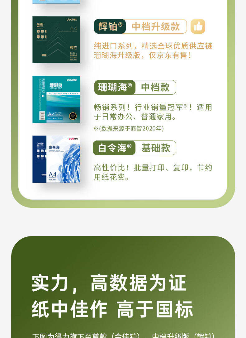 得力(deli)辉铂 A4 80g 加厚双面打印纸 原装进口复印纸 500张/包 5包1箱(整箱2500张) 自营